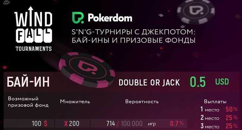 Помимо этого, в виртуальных стенах данного гемблинг заведения на постоянной основе проходит огромное количество онлайн чемпионатов, в разных форматах: МТТ, Sit-and-Go, Spin-and-Go и Windfall. Последние пользуются особой популярностью, так как в них принимает минимум игроков, тогда как призовые фонды в таких турнирах выбираются случайным образом.